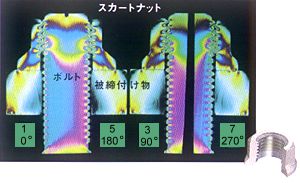 スカート加工部が、座面圧力分布を座面の外周側に移行させると同時に、円周方向の分布を均一にすることによって、軸直角振動外力から発生する「ゆるみ」を防止します。